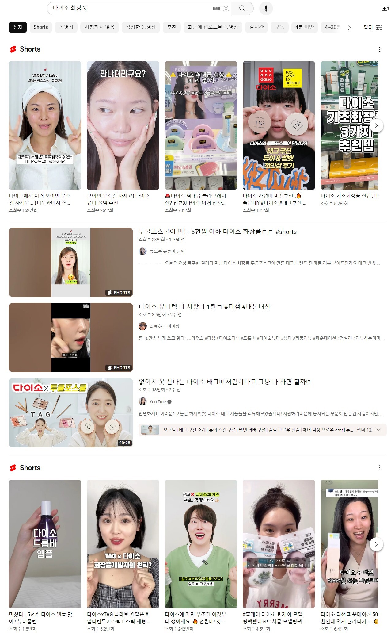 그렇게 2년이 흐른 지금, 다이소 화장품 현황은 어떨까요? 최근 다이소 화장품은 가성비를 추구하는 고객들에게 큰 인기를 얻고 있어요. 올해 1~8월 기초, 색조화장품의 매출은 전년 대비 약 160% 상승했고요. 또한, 실제 21년도부터 다이소 화장품 네이버 검색어 추이를 보면 얼마나 많은 고객들이 찾고 있는지 알 수 있어요. 유튜브에는 올리브영과 더불어 다이소의 꿀템을 소개하는 영상들이 넘쳐나고 있습니다.