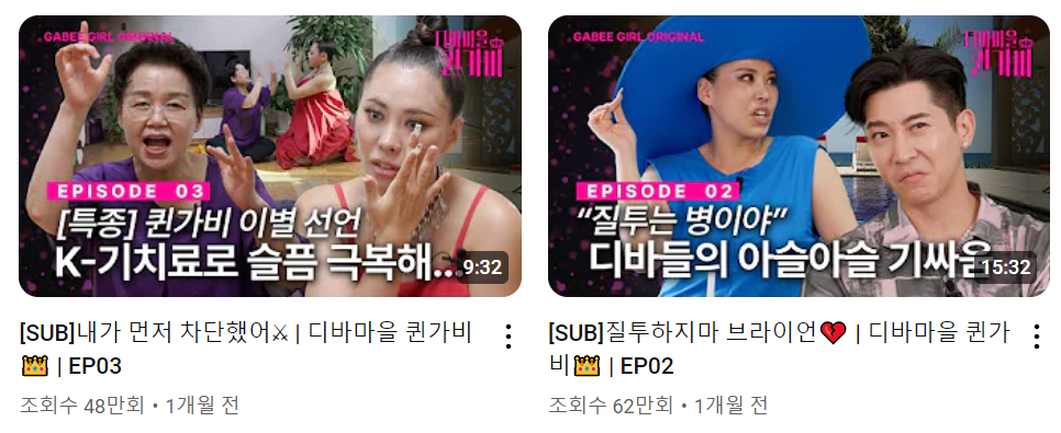 요즘 떡상하고 있는 그녀의 콘텐츠가 현재는 시즌 1로 종료된 상태예요. 댓글 반응을 보면 많은 이들이 시즌 2를 기다리고 있답니다. 유튜브 브랜디드 콘텐츠를 고민하고 있는 마케터라면 '디바마을 퀸가비' 시즌 2에 미리 컨택해 보는 것 어떨까요?