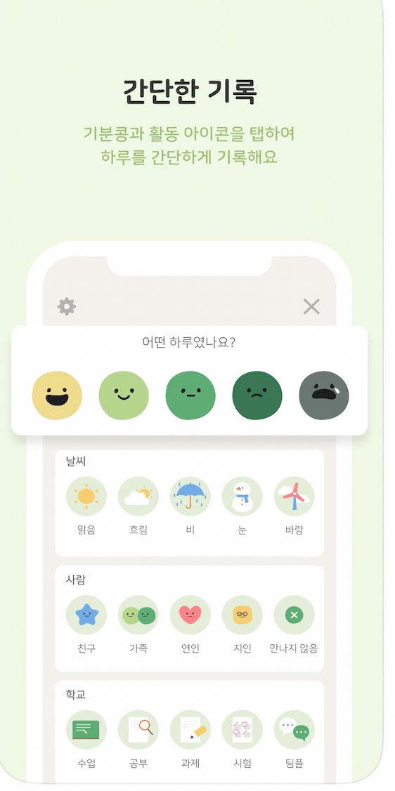 ✔️ 그날의 감정을 표현하며 꾸준히 기록 해나갈 수 있는 'MODDA', '해마 일기', '하루콩'