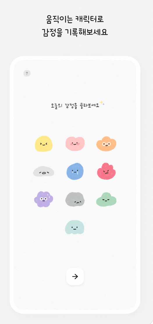 또 무드 트래커 방식의 기록의 강점은 쉽고 직관적이라는 점이에요. 우리가 일기를 쓰다보면 너무 잘 쓰려고 하거나 길어지면서 버거울 때가 있는데요. ‘표정’이라는 직관적인 도구를 중심으로 그날의 감정을 표현할 수 있다는 게 기록을 꾸준히 해나가는 동기가 됩니다. 이렇게 모인 감정 표정들은 월 단위로 모아서 볼 수 있기 때문에, 내가 어떨 때 어떤 기분을 느꼈는지 어떤 감정을 주로 느끼는지를 살펴볼 수 있어요.