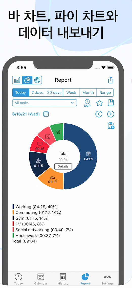 하루에 내가 어디에 시간을 얼마나 쏟고 있는지 기록하지 않는다면, 사실 정확하게 알기란 쉽지 않습니다. Atracker는 내가 목표로 설정한 과제들을 수행하는 시간을 기록해주는 어플인데요. 이렇게 기록된 데이터들은 바 차트, 파이 차트 형태로 한눈에 볼 수 있도록 변환되요. 과제를 수행하면서 버튼을 누르면 타이머처럼 작동이 되는 방식입니다. 직관적인 사용과 보고가 장점인 앱이기 때문에 열심히 일과를 보내지만 시간이 언제 지나갔는지 모르겠는 분들에게 추천해드려요!